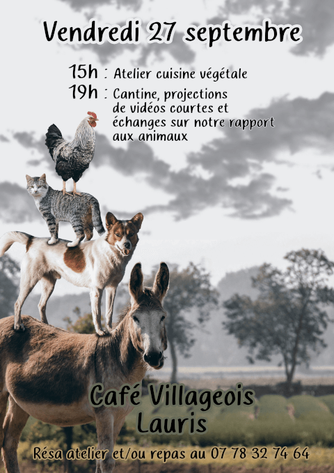 15h Atelier cuisine végétale, 19h Cantine, projections de vidéos courtes et échanges sur notre rapport aux animaux.