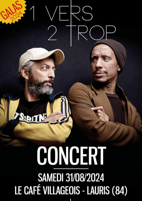 Samedi 31 août à 20h30 1V2T : 1vers2trop en concert Après mille déboires, de groupes en bouteilles, c’est dans le fond du verre que ce duo a fermenté. Entre deux bœufs saucés à la bourguignonne est née l’envie d’accoucher de poésies allongées sur un lit de musique : en somme de la « poésique ». Alors, trinquer aux vers de Genet et se tâcher d’un rouge Aragon. Rire aux éclats le Rictus crispé, Glissant sur les tourments d’Artaud. Et, marteau, se brûler les lèvres de sels noirs Baldwin... La recette est simple : des textes posés sur l’harmonie d’un piano et les cadences de batterie - le tout arrosé d’une voix qui oscille entre spoken words et chanson. Repas du café et buvette sur place. Pas de CB, prévoir des espèces ! Adhésion annuelle à prix libre Concert au chapeau, 10€ conseillé Café ouvert de 19h à 0h