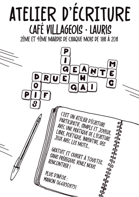L’atelier d’écriture du Café Villageois ce sont deux heures pour se détendre et apprendre ensemble à mieux manier la plume ! C’est un atelier participatif, gratuit et sans prérequis. Les deuxième et quatrième mardis de chaque mois de 18h à 20h. L’atelier se divise en deux partie. Dans la première heure on fait des petits temps d’écriture sur différentes thématiques animées par un membre de l'équipe. La deuxième partie, c’est nouveau, on écrit chacun·e une nouvelle ! Viens nous rencontrer et prendre un temps pour écrire avec nous !!