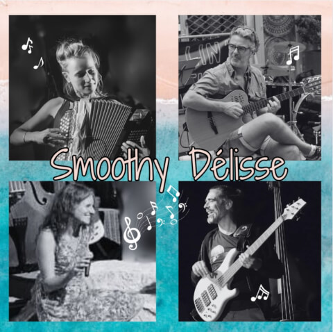 Samedi 7 à 20h30 Smoothy Délisse (chanson, bossa) Douceur, good vibes, pétillance. Une bulle de vacances. Nos reprises smoothy, à fleur de tempo, flirtent avec la bossa et la chanson française, délissent les standards internationaux, effleurent les rivages musicaux d’îles enchantées, et vous invitent à un voyage chaloupé, léger et coloré. Repas du café et buvette sur place. Pas de réservation repas ni concert Pas de CB, prévoir des espèces ! Adhésion annuelle à prix libre Concert au chapeau, 10€ conseillé Café ouvert de 19h à 0h