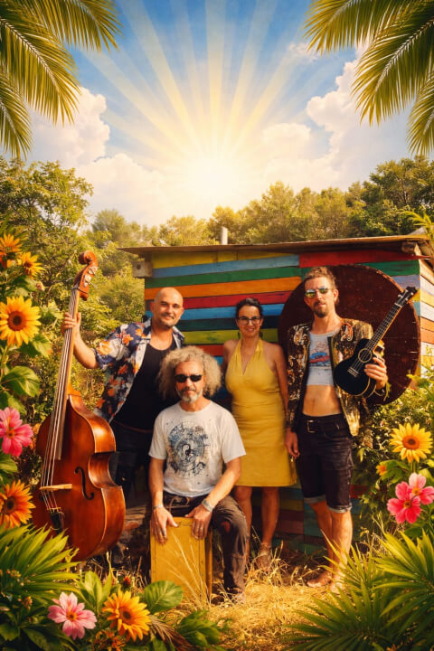 Yukabana fout la banane sous les cabanes ! Quatuor atypique, qui expérimente la musique dans un univers allant de la cumbia à la musique balkanique en passant par de la variété revisitée. Un voyage musical aux paysages variés, riche des différences qui composent le groupe, où les instruments tournent pour transmettre des valeurs humaines essentielles. Reprises et compositions douces ou motivées, parfois drôles et décalées, souvent engagées, Yukabana va te faire bouger ! Concert au chapeau petite restauration sur place Adhésion obligatoire à prix libre Pas de CB au bar