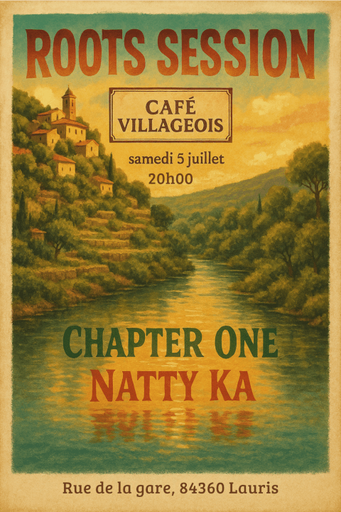 " Roots, Dub & Rock " Originaire de Marseille, Chapter One puise son inspiration dans l'âge d'or du Reggae Roots. Composé de six musiciens passionnés, le groupe tisse un pont entre traditions et modernités, offrant un univers musical singulier où se mêlent " Roots, Dub & Rock ". Portée par la voix a la fois puissante et envoûtante de leur chanteuse, leur musique rayonne d'une énergie positive et communicative. Leur répertoire, riche et engagé, alterne compositions originales aux textes humanistes et reprises venues des quatre coins du globe, pour une expérience live placée sous le signe du partage, de la conscience et de l'unité. Première partie Nous recevrons Natty Ka, projet solo d'un artiste aux racines réunionnaises et originaire du sud de la métropole. A travers un répertoire riche et sincère, Natty Ka mèle vibrations roots et sonorités actuelles. Avec sa plume sensible et sa voix habitée, Natty Ka invite à la réflexion , aux partage et aux voyages dans la pure tradition reggae roots.