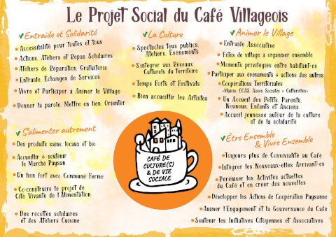 Répondre au questionnaire du CaféLe Café Villageois, Espace de Vie Sociale ré-écrit son projet social ! Tous·tes les adhérent·es peuvent rejoindre l'aventure du diagnostic de territoire ! Tous·tes ensemble nous avons constitué, 3 groupes de travail correspondant aux types d'actions que nous pourrons mener et que vous pouvez rejoindre : -> Groupe "Interviews Radio / vidéo" -> Groupe "Questionnaires" -> Groupe "Porteur de paroles / Théâtre forum / Fresque / Boîtes à idées" Nous nous retrouvons chaque jeudi de 14h à 17h pour fabriquer des boites à idées originales, rejoignez les chantiers du café ! + d'infos à cafevillageois@gmail.com